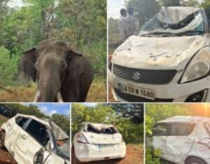 ಉಚಗಾಂವ-ಬೆಕ್ಕಿನಕೆರೆ ಮಾರ್ಗದಲ್ಲಿ ಮದಗಜದ ದಾಳಿಗೆ ಕಾರೊಂದು ಜಖಂ