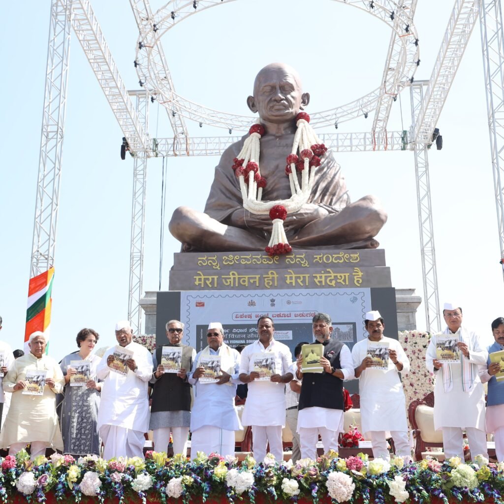 ಬೆಳಗಾವಿ: 1924 ರಲ್ಲಿ ಬೆಳಗಾವಿಯಲ್ಲಿ ಮಹಾತ್ಮ ಗಾಂಧೀಜಿಯವರ ಅಧ್ಯಕ್ಷತೆಯಲ್ಲಿ ನಡೆದ ಕಾಂಗ್ರೆಸ್ ಅಧಿವೇಶನದ ಸಂದರ್ಭದಲ್ಲಿ ಕೈಗೊಂಡ ನಿರ್ಣಯಗಳು,ಅಧ್ಯಕ್ಷೀಯ ಭಾಷಣ ಮತ್ತಿತರ ಮಾಹಿತಿಗಳು ಹಾಗೂ ಅಪರೂಪದ ಛಾಯಾಚಿತ್ರಗಳನ್ನು ಒಳಗೊಂಡು ವಾರ್ತಾ ಮತ್ತು ಸಾರ್ವಜನಿಕ ಸಂಪರ್ಕ ಇಲಾಖೆ ಪ್ರಕಟಿಸಿರುವ “ಗಾಂಧಿ ಭಾರತ ಮರು ನಿರ್ಮಾಣ” ಹಾಗೂ Reclaiming Gandhi Bharath ಕನ್ನಡ ಹಾಗೂ ಆಂಗ್ಲ ಪುಸ್ತಕಗಳನ್ನು ಮುಖ್ಯಮಂತ್ರಿ ಸಿದ್ದರಾಮಯ್ಯ,ರಾಜ್ಯಸಭೆ ವಿರೋಧ ಪಕ್ಷದ ನಾಯಕ ಮಲ್ಲಿಕಾರ್ಜುನ ಖರ್ಗೆ ಬಿಡುಗಡೆ ಮಾಡಿದರು.