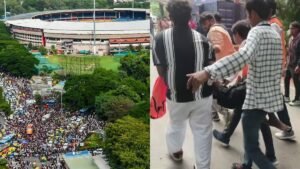 ತಮ್ಮ ನೆಚ್ಚಿನ ಆಟಗಾರರನ್ನು ಸನಿಹದಿಂದ ಕಣ್ತುಂಬಿಕೊಳ್ಳಲು ಸ್ಟೇಡಿಯಂಗೆ ಜನಸಾಗರವೇ ಹರಿದು ಬಂದಿತ್ತು. ಭಾರೀ ಸಂಖ್ಯೆಯಲ್ಲಿ ಅಭಿಮಾನಿಗಳು ಜಮಾಯಿಸಿದ ಹಿನ್ನೆಲೆಯಲ್ಲಿ ನೂಕುನುಗ್ಗಲು ಉಂಟಾಯಿತು.