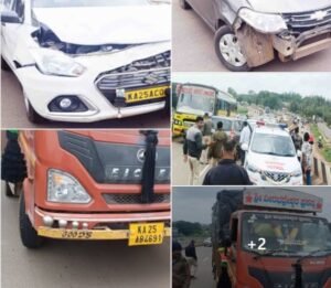 ಧಾರವಾಡದ ನವಲೂರು ಬಳಿ ಹೆಚ್ಡಿ ಬಿಆರ್ಟಿಎಸ್ ಸೇತುವೆ ಮೇಲೆ ಸರಣಿ ಅಪಘಾತ, ತಪ್ಪಿದ ಅನಾಹುತ…… ಎರಡು ಕಾರ್ಗಳ ಮುಂಭಾಗ ಜಖಂ.