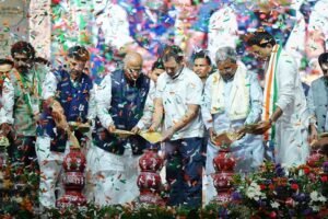 ಎಐಸಿಸಿ ಅಧ್ಯಕ್ಷರಾದ ಮಲ್ಲಿಕಾರ್ಜುನ ಖರ್ಗೆ ಅವರು ಸಿಎಂ ಸಿದ್ಧರಾಮಯ್ಯ ಮತ್ತು ಕೆಪಿಸಿಸಿ ಅಧ್ಯಕ್ಷ ಡಿ.ಕೆ.ಶಿವಕುಮಾರ ಅವರ ನೇತೃತ್ವದಲ್ಲಿ ಕರ್ನಾಟಕದಲ್ಲಿ ಕಾಂಗ್ರೆಸ್ ಸರ್ಕಾರ ಸುರಳಿತವಾಗಿ ನಡೆದಿದೆ. ಕಾಂಗ್ರೆಸ್ ಸರ್ಕಾರ ಗ್ಯಾರಂಟಿಗಳನ್ನು ಜಾರಿಗೊಳಿಸಿ ನುಡಿದಂತೆ ನಡೆಯುತ್ತಿದೆ. ಆದರೇ, ಪಿಎಂ ಮೋದಿ ನೀಡಿದ ಮಾತುಗಳನ್ನು ತಪ್ಪಿದ್ದಾರೆ ಎಂದರು.