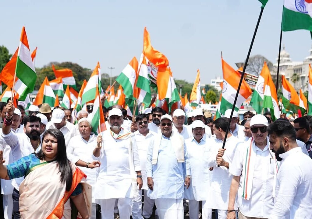 ಪಹಲ್ಗಾಂ ಉಗ್ರರು ನಡೆಸಿದ ನರಮೇಧಕ್ಕೆ ಪ್ರತೀಕಾರವಾಗಿ ‘ಆಪರೇಷನ್‌ ಸಿಂದೂರ’ ಕಾರ್ಯಾಚರಣೆ ನಡೆಸುತ್ತಿರುವ ಭಾರತೀಯ ಯೋಧರಿಗೆ ಬೆಂಬಲ ಸೂಚಿಸಲು ರಾಜ್ಯ ಕಾಂಗ್ರೆಸ್‌ ವತಿಯಿಂದ ಇಂದು ಬೆಂಗಳೂರಿನಲ್ಲಿ ‘ತಿರಂಗಾ ಯಾತ್ರೆ’ ಹಮ್ಮಿಕೊಳ್ಳಲಾಗಿತ್ತು. ಮುಖ್ಯಮಂತ್ರಿ ಸಿದ್ದರಾಮಯ್ಯ ನೇತೃತ್ವದಲ್ಲಿ ಇಂದು ಬೆಳಗ್ಗೆ ಕೆ.ಆರ್‌.ವೃತ್ತದಿಂದ ದೇಶಪ್ರೇಮ ಮೆರೆಯೋಣ, ಐಕ್ಯತೆ ಸಾರೋಣ’ ಎಂಬ ಘೋಷವ್ಯಾಕ್ಯದಡಿ ಚಿನ್ನಸ್ವಾಮಿ ಕ್ರಿಕೆಟ್‌ ಸ್ಟೇಡಿಯಂ ಬಳಿ ಇರುವ ಮಿನ್ಸ್ಕ್‌ಸ್ಕ್ವೇರ್‌ವರೆಗೆ ಬೃಹತ್‌ ತಿರಂಗಾ ಯಾತ್ರೆ ನಡೆಯಿತು.